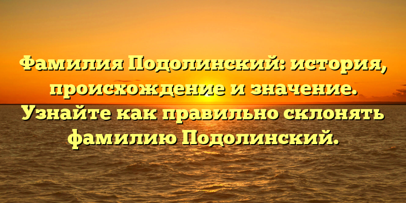 Подолинский: происхождение и значение фамилии, секреты правильного склонения