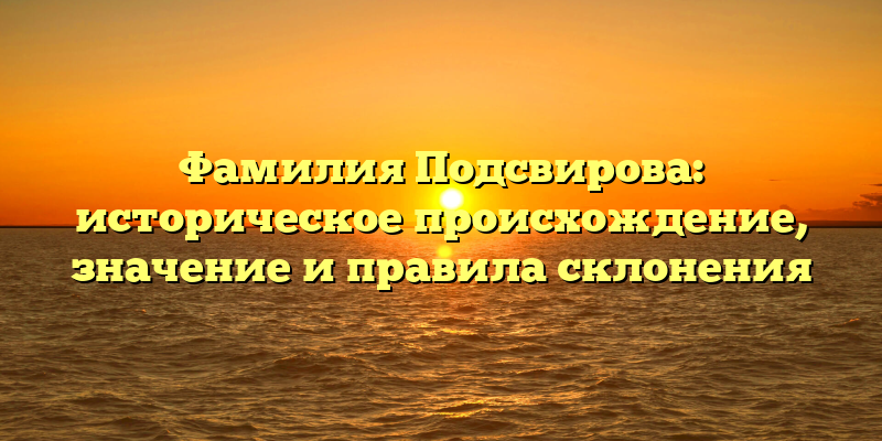 - Фамилия Подсвирова: происхождение, значение и правила склонения в историческом контексте
