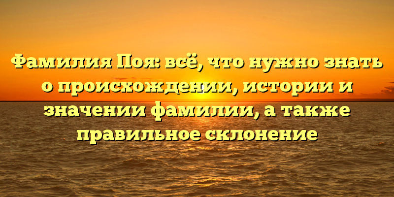 - Фамилия Поя: возникновение, история и значение, а также правила склонения — все об этом знать