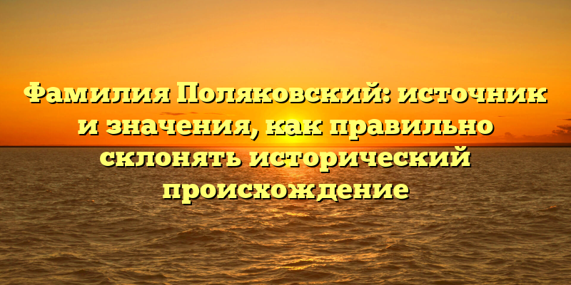 - Фамилия Поляковский: происхождение и значения, советы по правильному склонению в историческом контексте