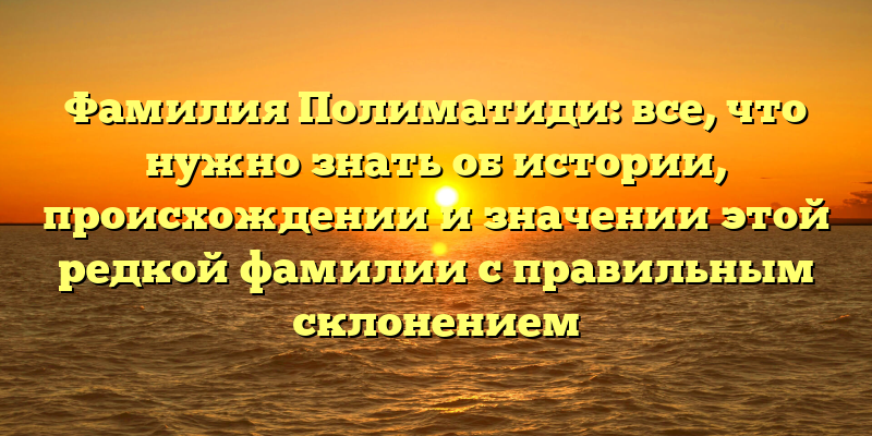 - Фамилия Полиматиди: происхождение, история и значение с полным склонением — узнайте все, что нужно!