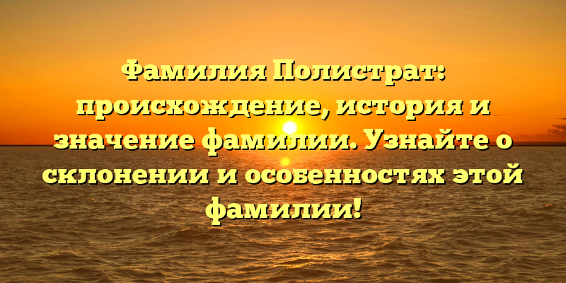 От древности до современности: история и значение фамилии Полистрат. Узнайте все об уникальном склонении и интересных особенностях этой фамилии!