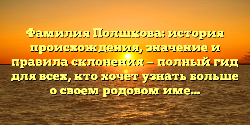 - Исследуйте свои корни: родовая фамилия Полшкова — история, значение и правила склонения — ваш полный гид!