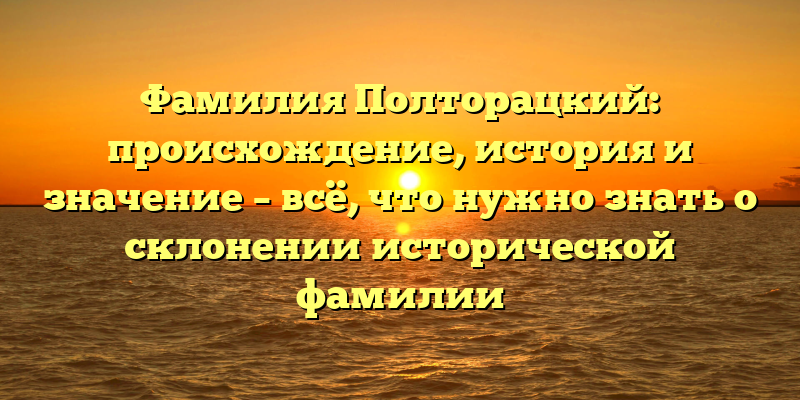 - Фамилия Полторацкий: происхождение, история и значение. Узнайте всё об исторической фамилии и ее склонении!
