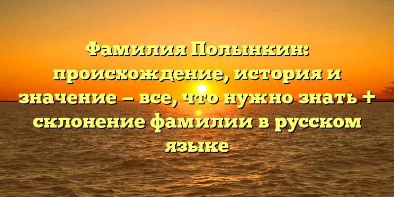 - Фамилия Полынкин: происхождение, история и значение, а также правильное склонение для русского языка
