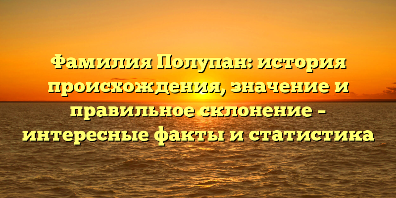 - Фамилия Полупан: история, значение и правильное склонение — узнайте все интересные детали и статистику