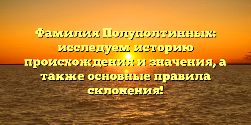 - Раскрываем тайны Фамилии Полуполтинных: исследуем историю, значения и правила склонения!
