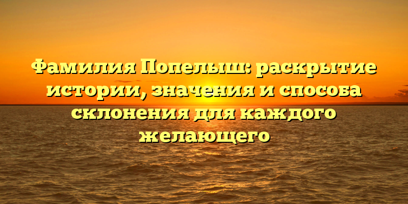- Исследуйте историю и значение фамилии Попелыш: техники склонения и полный гид для любого желающего