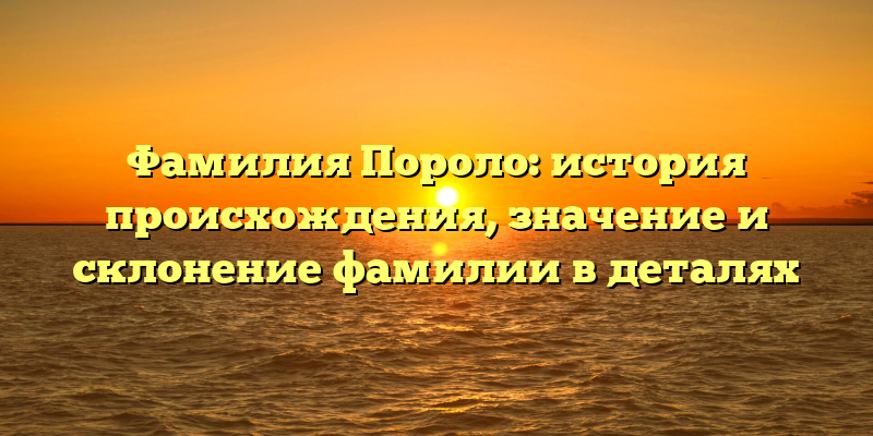 Давайте рассмотрим историю и значения фамилии Пороло в деталях и узнаем о том, как склоняется эта фамилия в зависимости от ситуации.