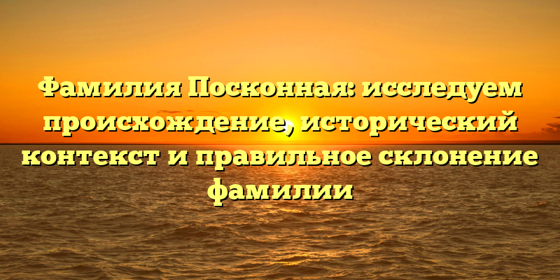 Фамилия Посконная — одна из наиболее интересных фамилий, которая вызывает много вопросов у исследователей родословной. Именно поэтому мы решили провести с ней более детальное исследование и разобраться во всех нюансах происхождения, исторического контекста и правильного склонения.