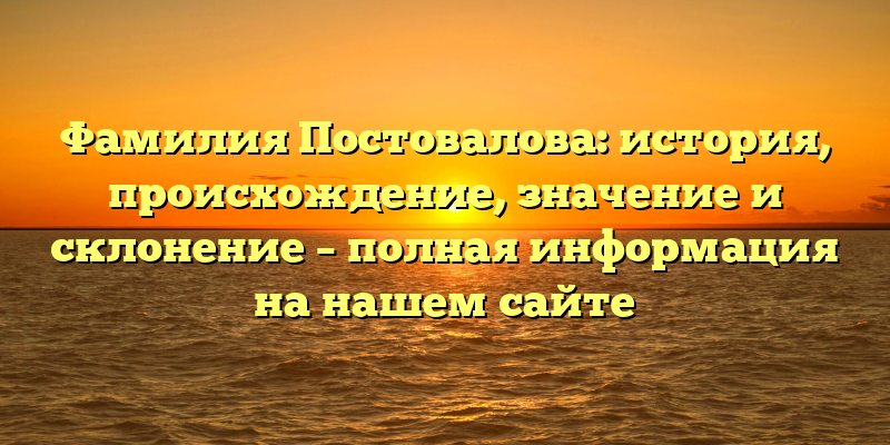 - Фамилия Постовалова: полная история, происхождение и значение – все, что вы хотели знать.