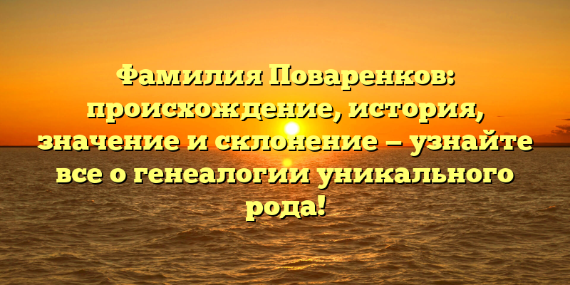 - Фамилия Поваренков: история, происхождение и склонение рода — раскрываем все секреты генеалогии!