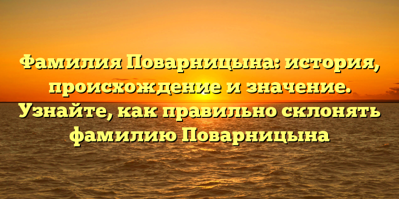 - Фамилия Поварницына: Корни, История и Правильное Склонение — Гид по Фамилии для Любознательных.