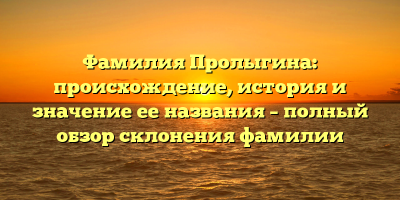 - Происхождение и история фамилии Пролыгина: все, что нужно знать о значении названия и склонении в этом полном обзоре