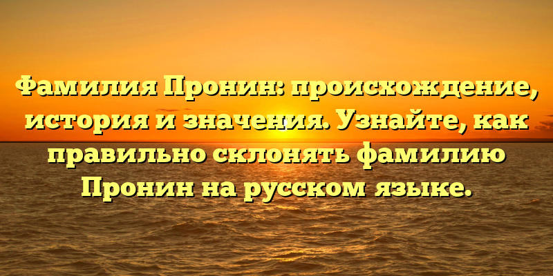 - Пронин: история происхождения и значений фамилии. Экспертный гид по правильному склонению на русском языке.