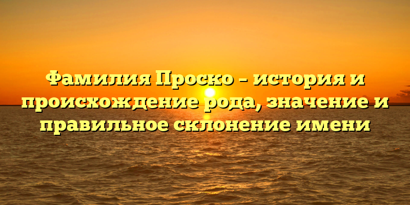 - Изучаем происхождение и историю фамилии Проско вместе: правильное склонение имени и его значение