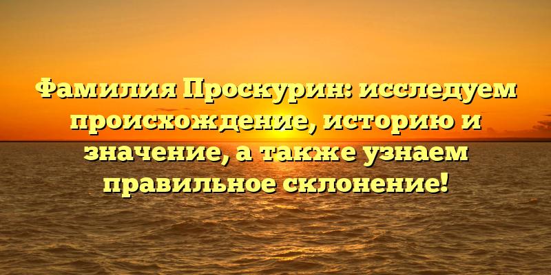 Далее мы расскажем о происхождении фамилии Проскурин, о том, как она изменилась со временем и где можно встретить людей с этой фамилией сегодня. Мы также рассмотрим значение фамилии и дадим советы, как правильно склонять ее в разных случаях. Все это поможет читателю более полно понимать эту фамилию и ее историческое значение.