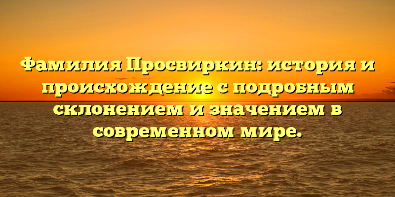 Каждая фамилия имеет свою историю, корни и происхождение. Фамилия Просвиркин не является исключением, и знать о ее истории будет интересно любопытным историкам, генеалогам и лингвистам.