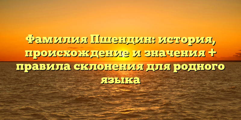 - Фамилия Пшендин: происхождение, значение и правила склонения для носителей родного языка