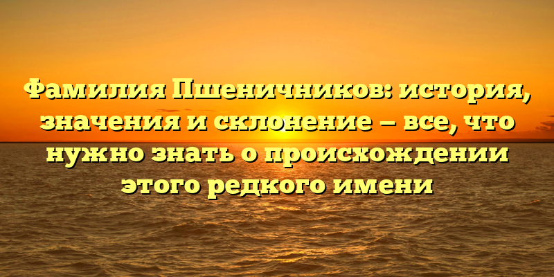 - Пшеничников: происхождение, значения и склонение фамилии — обзор истории редкого имени