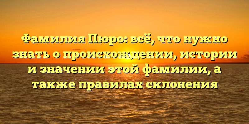 - Фамилия Пюро: происхождение, история и значение, а также правила склонения — обзор и полезная информация
