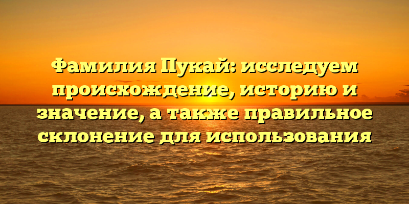 Полное расследование: Фамилия Пукай – происхождение, история и значение, а также советы по правильному склонению