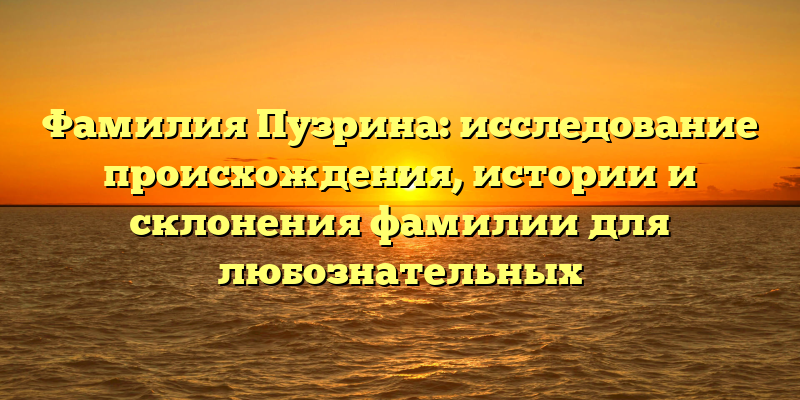 - Откройте тайны происхождения Фамилии Пузрина: исследование истории и склонений для познавательных Гениев