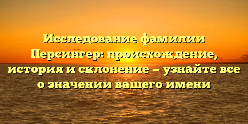 - Генеалогическое исследование фамилии Персингер: происхождение, история и склонение вашего имени раскрыты!
