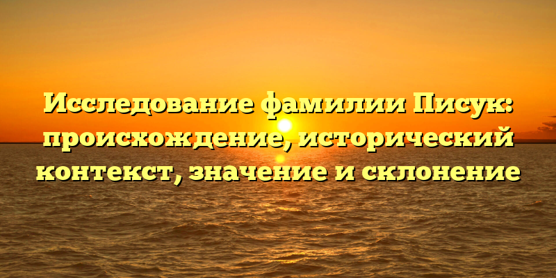 Откройте тайны фамилии Писук: истоки, контекст и значение в исследовании генеалогии