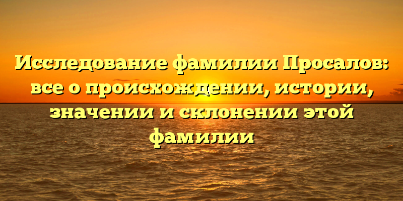 - Полное исследование фамилии Просалов: происхождение, история, значение и склонение для всех, кто ищет свои корни