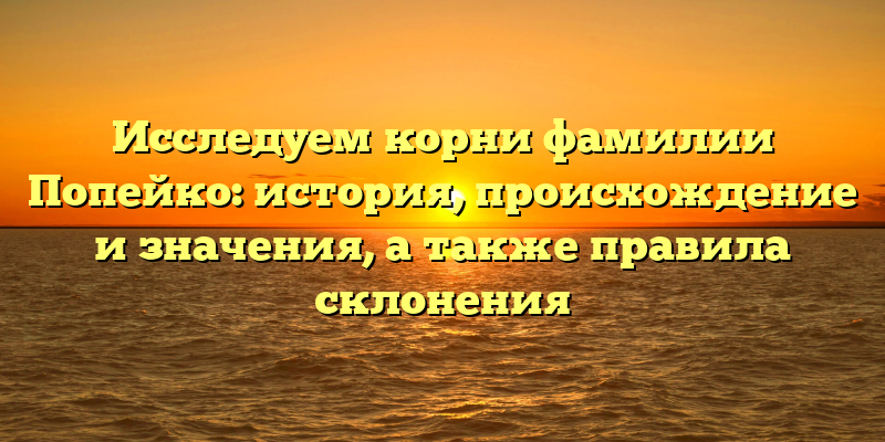 Раскрываем тайны фамилии Попейко: история, происхождение, значения и правила склонения