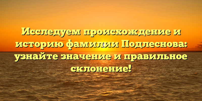 - Глубокое исследование происхождения фамилии Подлеснова: откройте значение и правильное склонение для вашего рода!