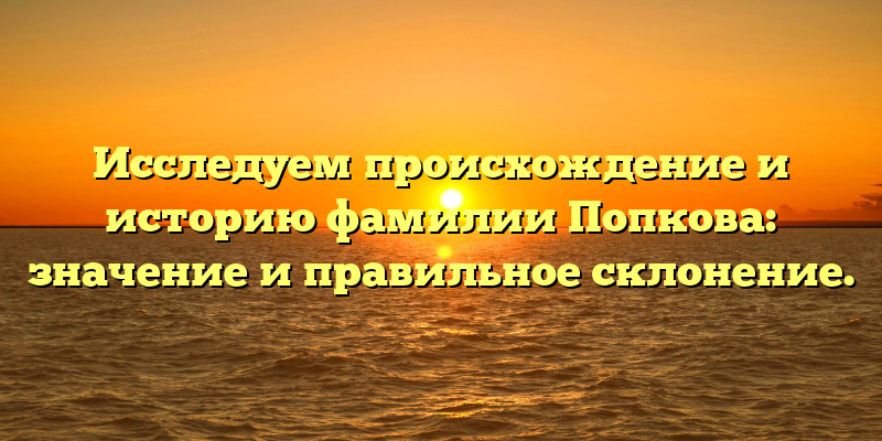 Фамилия Попкова — одна из самых распространенных фамилий в России. В нашем исследовании мы постараемся выяснить происхождение и историю этой фамилии, верность правилам склонения и значения слова.