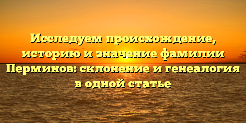 Будьте готовы к увлекательному путешествию, исследующему мир фамилии Перминов.