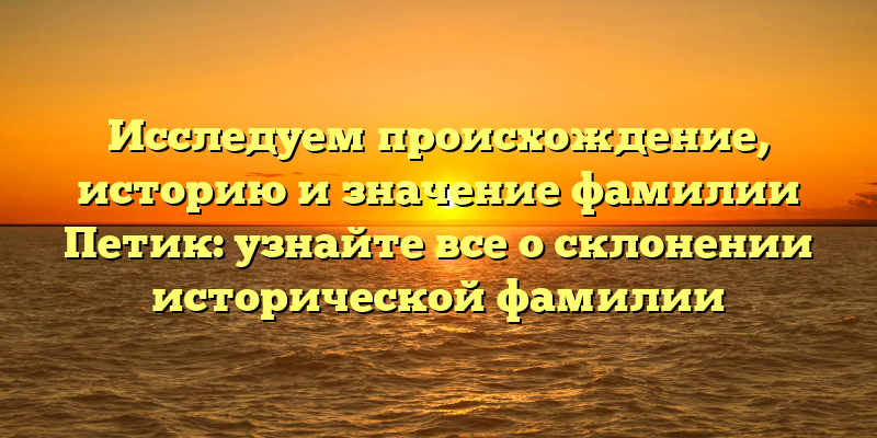 - Фамилия Петик: истоки, история и важность. Узнайте о правильном склонении этой исторической фамилии.