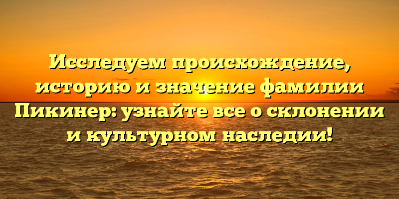 - Пикинеры: происхождение, история и культурное наследие фамилии! Узнайте о склонении и уникальных особенностях в статье.