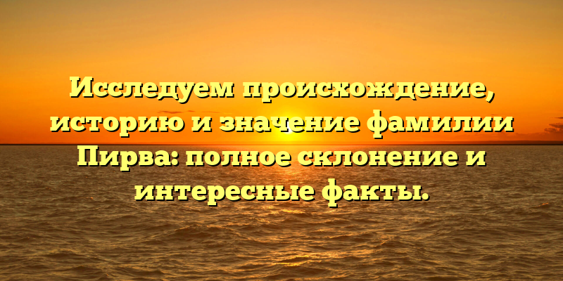 - Фамилия Пирва: изучаем ее происхождение, историю и смысл. Полное склонение и увлекательные факты в одной статье.