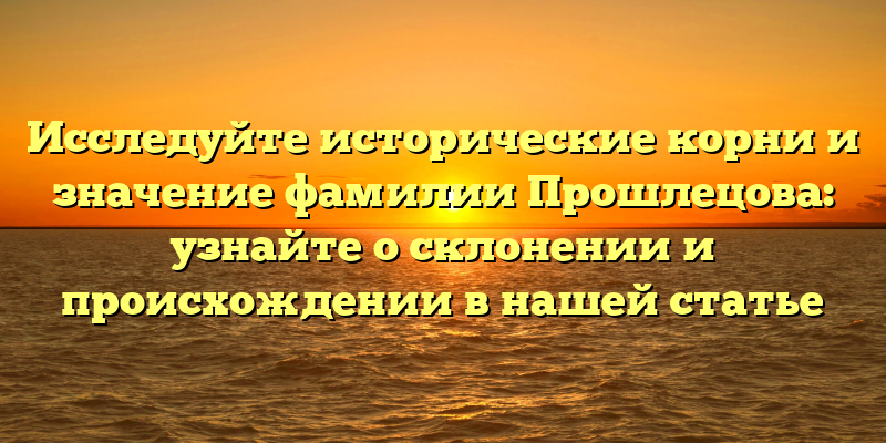 Узнайте происхождение и исторические корни фамилии Прошлецова: полное руководство по склонению и значениям в нашей статье.