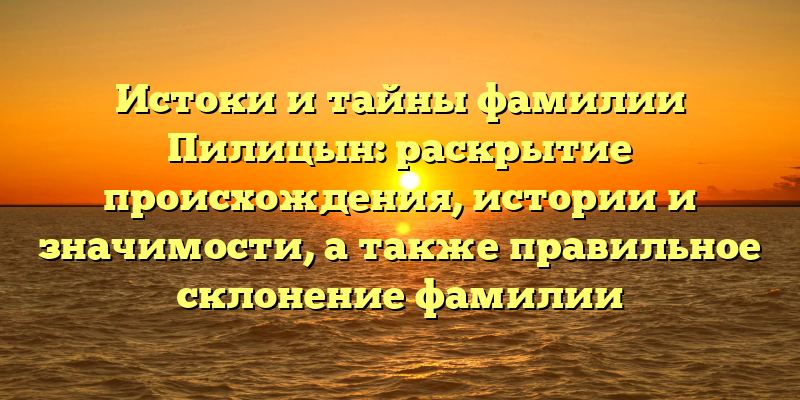 - Раскрываем тайны и происхождение фамилии Пилицын: история и значимость, а также правильное склонение