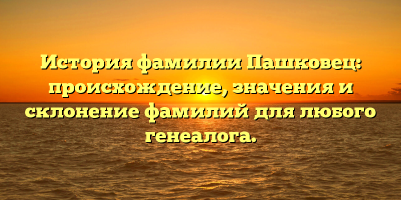 Несмотря на то, что фамилия Пашковец достаточно распространена, о происхождении и значениях этого имени знают не так уж и много. В этой статье мы рассмотрим не только происхождение и значения этой фамилии, но и дадим рекомендации по склонению фамилий для любого генеалога.