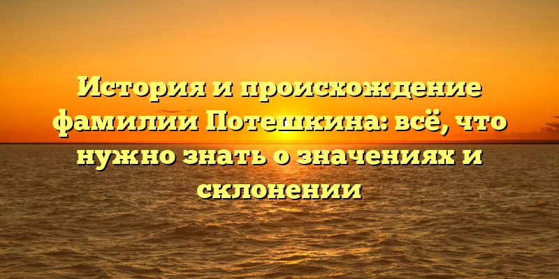 В этой статье мы рассмотрим подробности происхождения и истории фамилии Потешкин, разберёмся с её склонением и значениями, а также поговорим о том, как она воспринимается в современном мире.