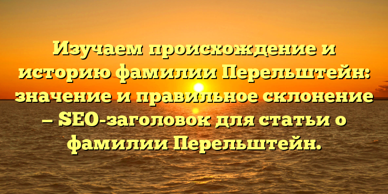 - Исследуем происхождение и историю фамилии Перельштейн: правильное склонение и значение в SEO-статье.
