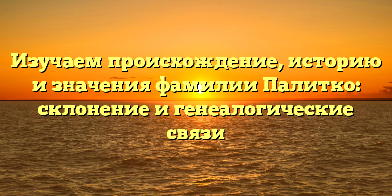 - Полный генеалогический обзор фамилии Палитко: история происхождения, склонение и значения имени