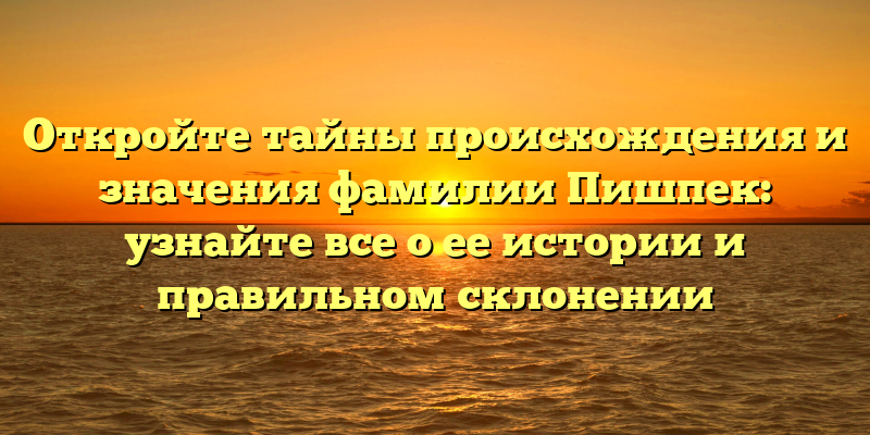 Исследуйте историю фамилии Пишпек: секреты происхождения, значения и правильное склонение.