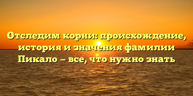 - Исследуем истоки фамилии Пикало: от истории до значения и происхождения