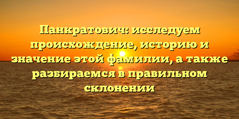 Панкратович: происхождение, история и значение фамилии, а также правильное склонение в современном языке!