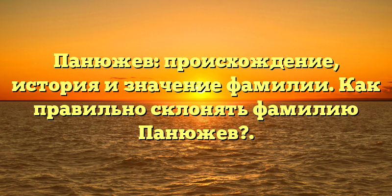 - Раскрытие тайн фамилии Панюжев: происхождение, история и правильное склонение