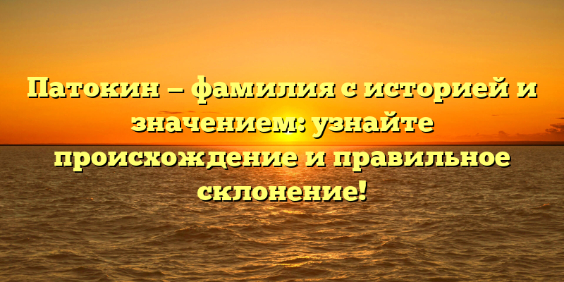 - Патокин: история фамилии, значение и правильное склонение — все, что нужно знать.