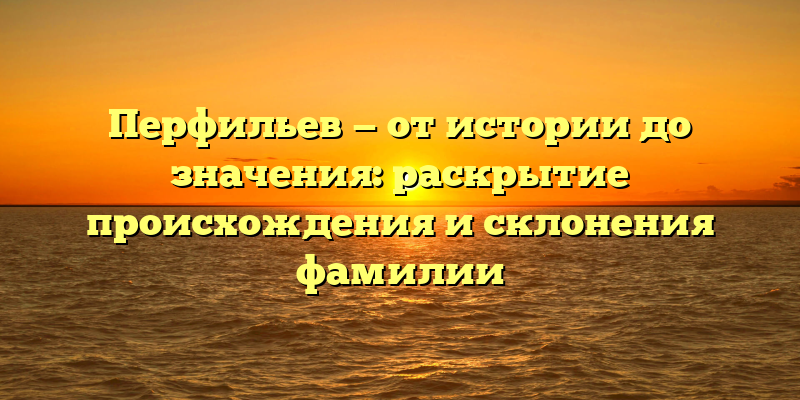 Фамилия Перфильев является довольно редкой и интересной. Она имеет не только свою историю, но и глубокий смысл. В этой статье мы раскроем происхождение и склонение фамилии Перфильев, а также рассмотрим ее значение для современного общества.