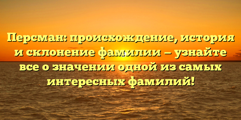 Кроме этого, у фамилии Персман есть свое особое значение, которое связано с различными областями науки и искусства и звучит как «сильный дух». В этой статье вы узнаете все о том, каково происхождение и история фамилии Персман, а также о том, как склонять эту уникальную фамилию при обращении.